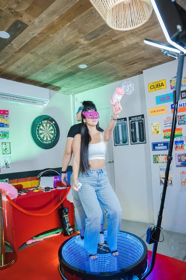 El fotomatón fue uno de los grandes aciertos del evento. Desde el principio llamó la atención por su diseño moderno y su funcionamiento totalmente intuitivo. Los invitados no tardaron en animarse y, una vez dentro, la diversión fue constante.